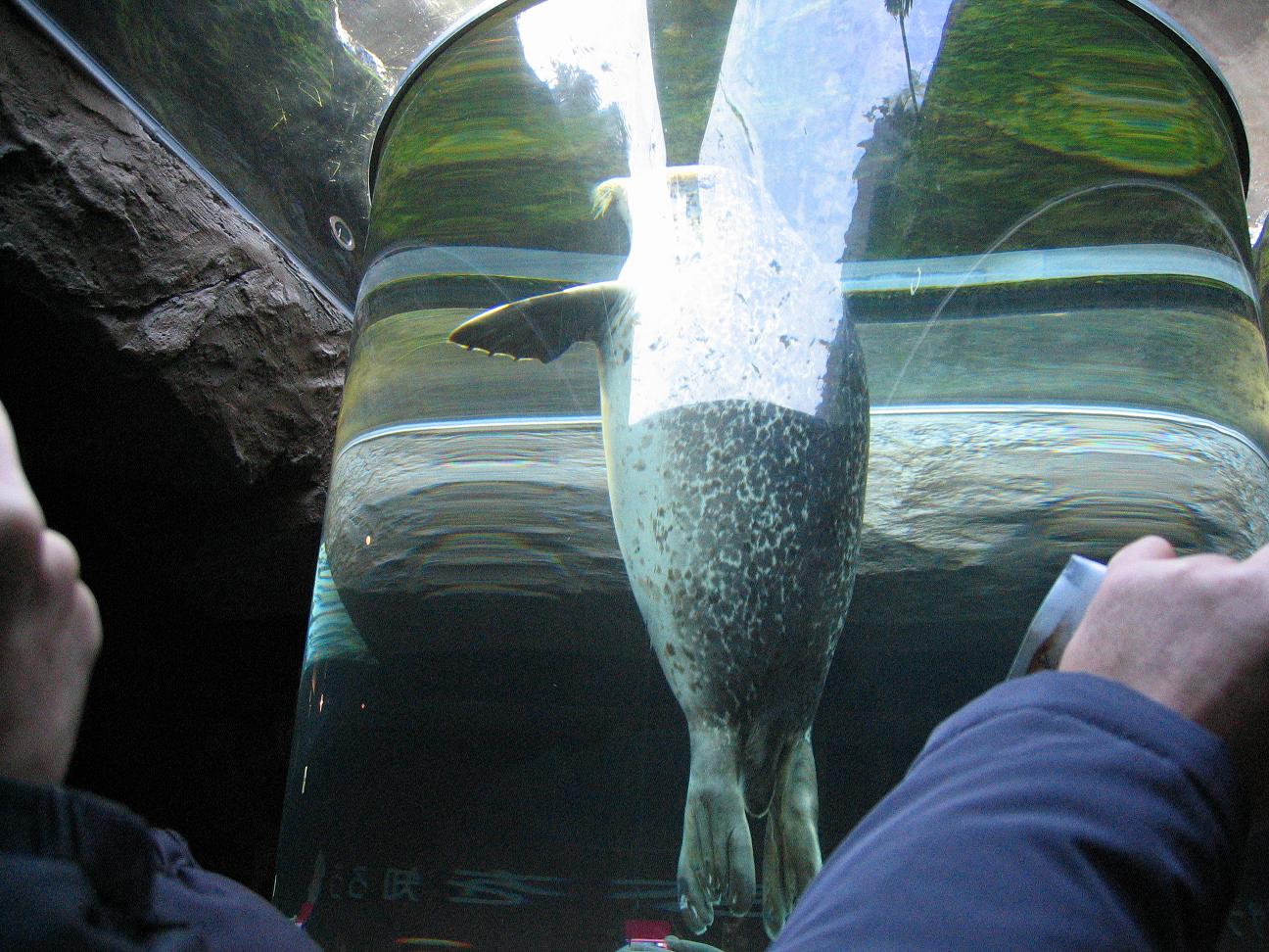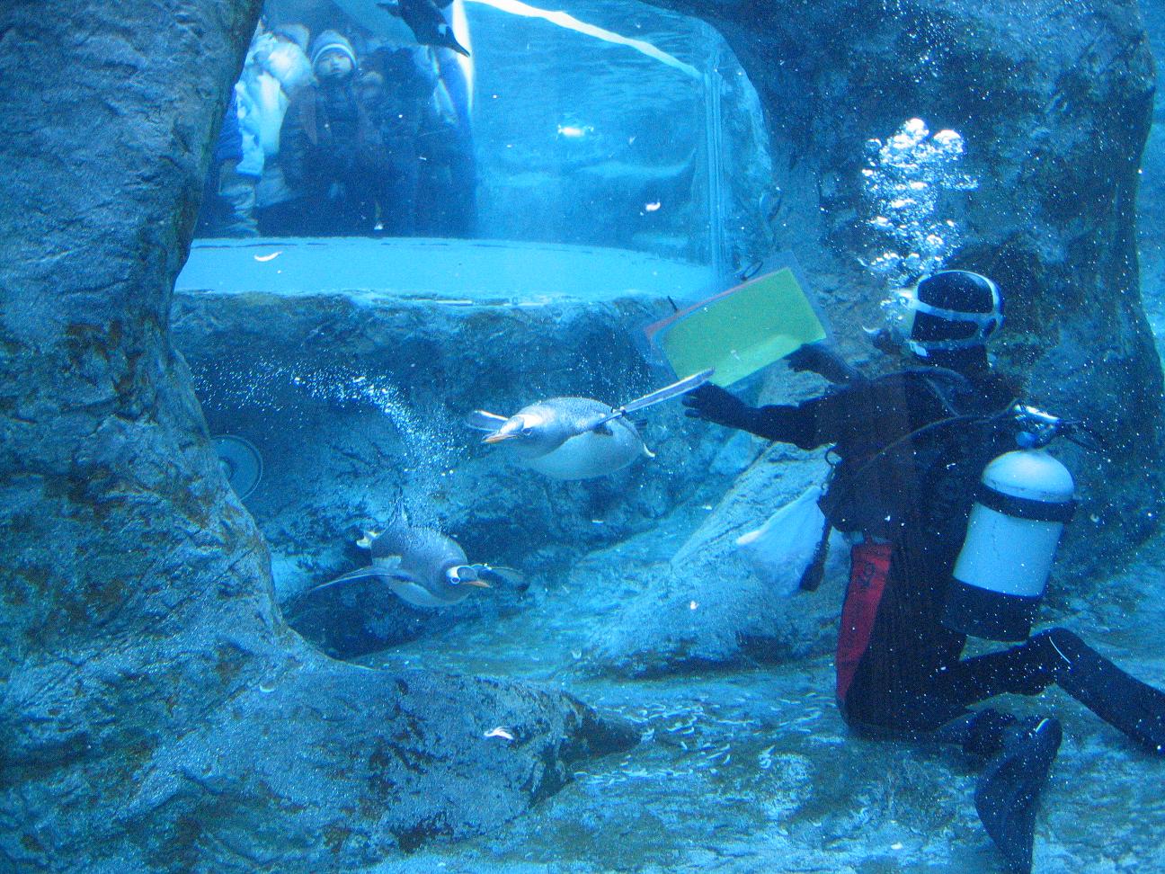 その後、アザラシの給餌・しろくま・ペンギンの水中給餌と見学し