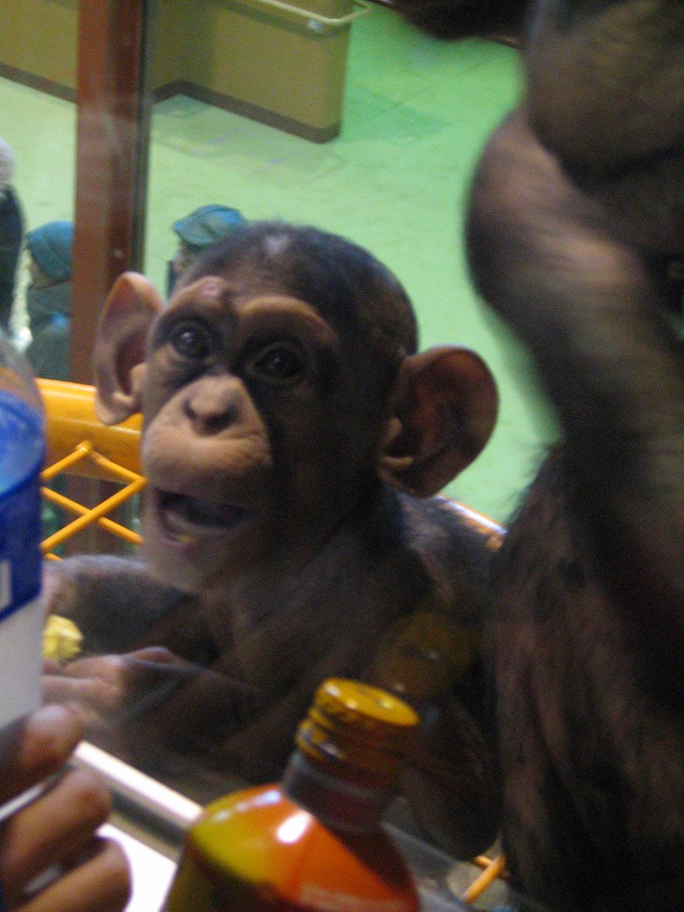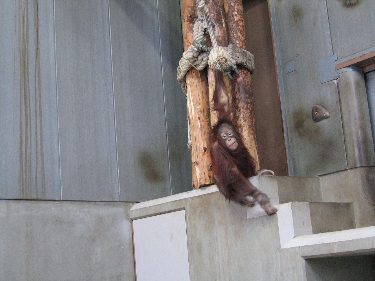 寒さに弱いオランウータンやチンパンジーは室内での展示でした。